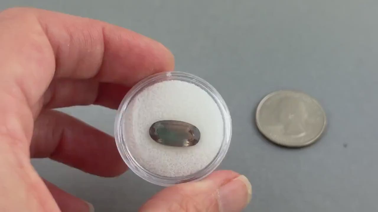 Incredible bicolor Oregon sunstone shows both green and deep red throughout the stone. Green is the rarest color of sunstone and this combination of green/peach is only found in Oregon.